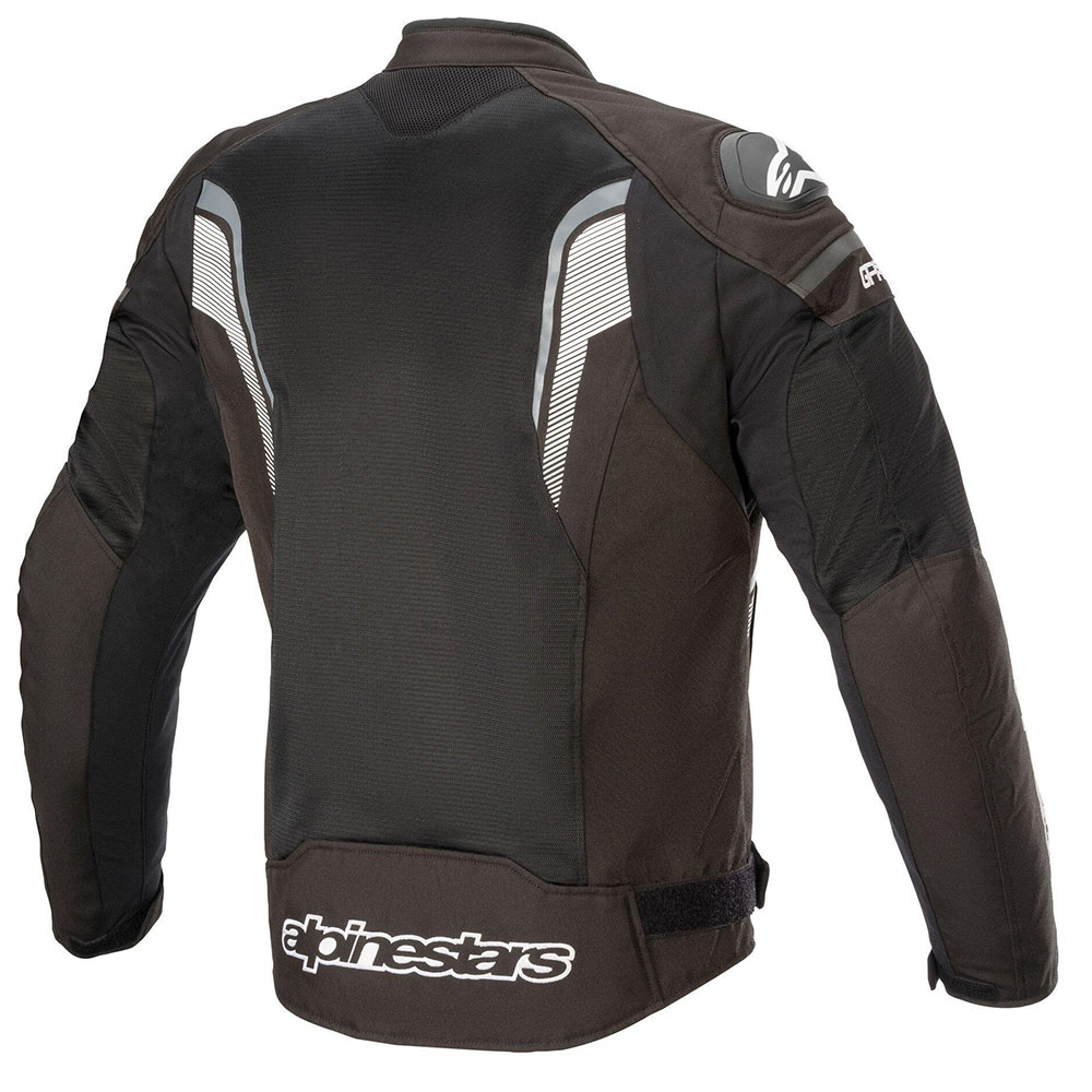 Καλοκαιρινό μπουφάν μοτοσυκλέτας Alpinestars T-GP PLUS R V3 AIR σε μαύρο και σκούρο γκρι χρώμα με άσπρες λεπτομέρειες. To Alpinestars T-GP PLUS R V3 Air είναι ένα καλοκαιρινό τζάκετ μηχανής, με έμφαση στην σπορ πλευρά χάρη στην αισθητική ου. Η κατασκευή από συνθετικό πολυεστέρα υψηλής αντοχής 600D με επίστρωση διπλής πολυουρεθάνης και ο εξαιρετικός εξαερισμός με μεγάλα διάτρητα πλέγματα μπροστά, στην πλάτη αλλά και πλευρικά, το καθιστούν ιδανικό για την οδήγηση στην πόλη ή στην εκδρομή, τους πιο ζεστούς μήνες.