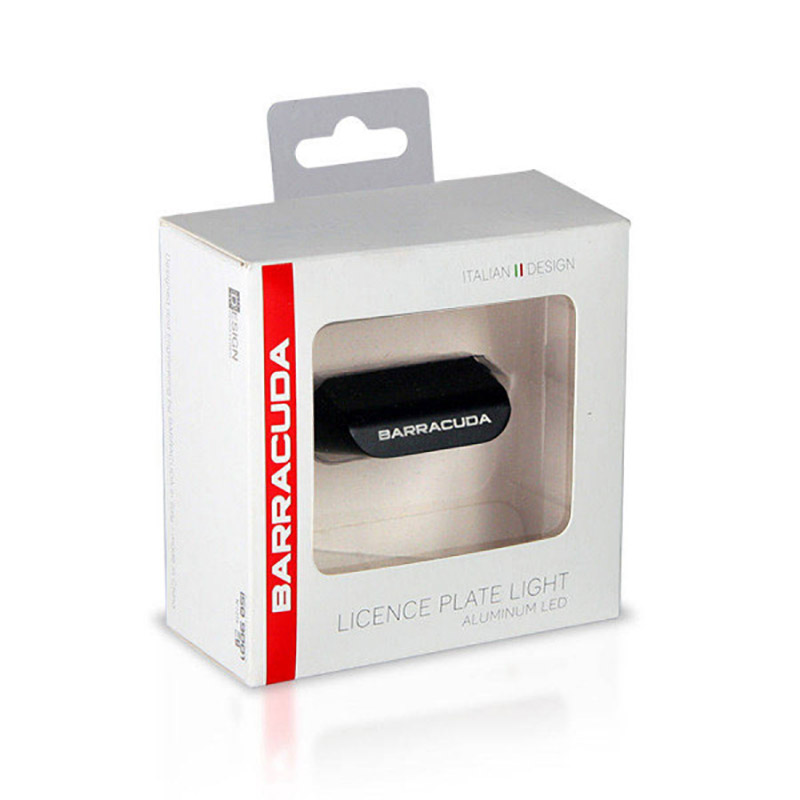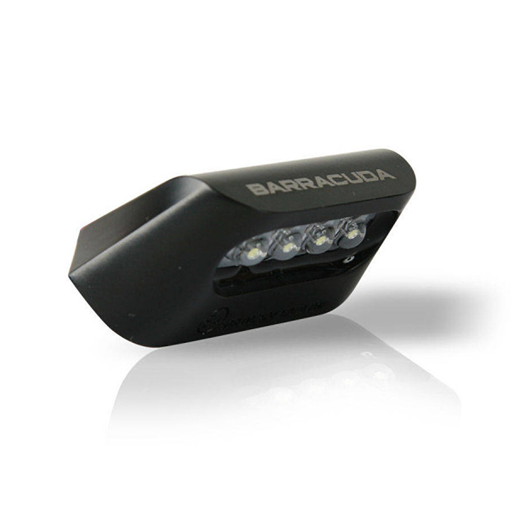 Barracuda N1002 universal LED φως πινακίδας. Το E-Marked φως πινακίδας της Barracuda είναι κατασκευασμένο από ανοδιωμένο αλουμίνιο, σε μαύρο χρώμα και διαθέτει πολύ φωτεινά λευκά LED με πιστοποίηση TUV. Η σύνδεσή του δεν απαιτεί καμία παρέμβαση στο κύκλωμα της μοτοσικλέτας, απλά συνδέετε το φως με την υπάρχουσα καλωδίωση. Ταιριάζει σε όλες τις βάσεις πινακίδας BARRACUDA καθώς και με τις περισσότερες βάσεις πινακίδας της αγοράς.