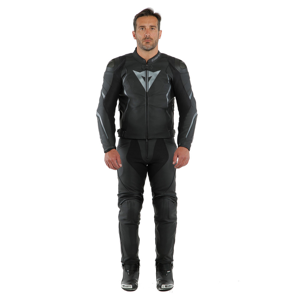 Δερμάτινο μπουφάν Dainese Avro 4 για χρήση εντός και εκτός πίστας. Ένα υψηλών απαιτήσεων σπορ jacket για το δρόμο, έτοιμο για track days, στην έκδοση σε μαύρο ματ χρώμα με ανθρακί λεπτομέρειες. Το Avro 4 είναι η τελευταία εξέλιξη της high level sport σειράς των δερμάτινων μπουφάν της Dainese και φέρει σημαντικές καινοτομίες σε επίπεδο άνεσης και εργονομίας, ακολουθώντας πάντα τα αυστηρά στάνταρ ασφαλείας της ιταλικής εταιρείας και το γνωστό επιθετικό της σχεδιασμό.