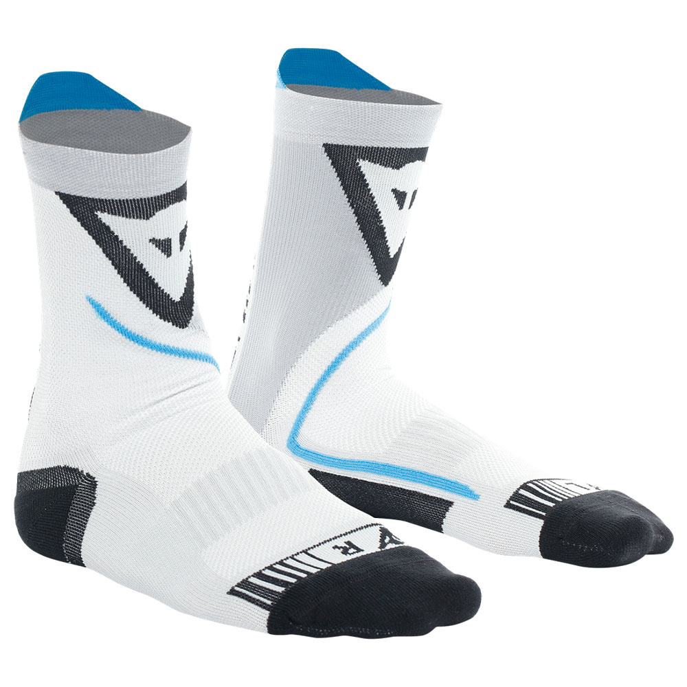 Ισοθερμικές κάλτσες μηχανής Dainese Dry Mid Socks σε άσπρο/μπλε χρώμα, ιδανικές για χρήση στην μοτοσυκλέτα, με αντοχή στο χρόνο, διαπνέουσες κάλτσες σχεδιασμένες να εξασφαλίζουν εργονομία και κατάλληλη θερμορρύθμιση σε πιο ήπια και θερμά κλίματα.