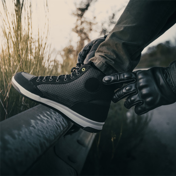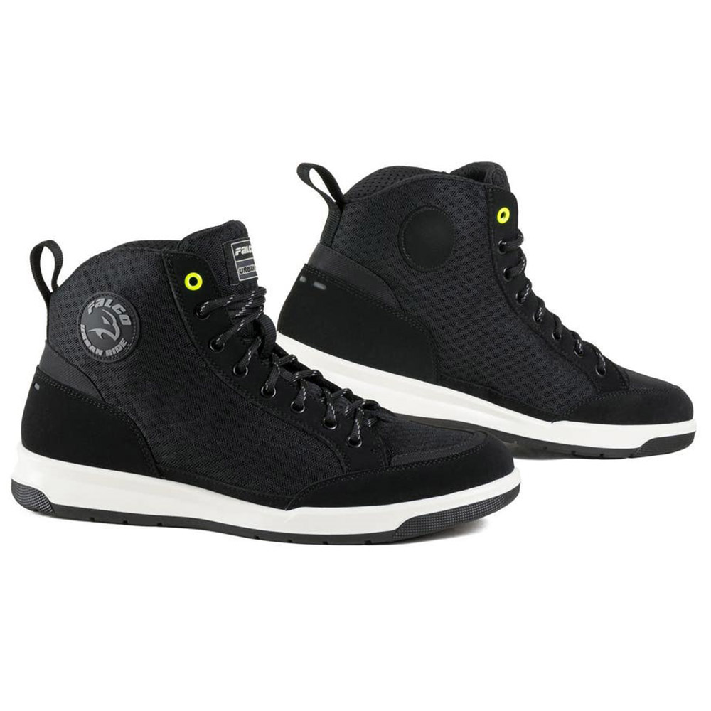 Αντρικά καλοκαιρινά μποτάκια μηχανής Falco Airforce σε μαύρο χρώμα. Το Airforce είναι ένα σχεδόν casual, κοντό μποτάκι που μπορείς να το περπατήσεις άνετα εκτός μοτοσυκλέτας κάθε μέρα. Διαθέτει ύφασμα "Micro-Synth" και είναι διάτρητο στο πάνω μέρος και στο πλάι για να διευκολύνει τον αερισμό των ποδιών, που συνδυάζεται τέλεια με την επένδυση "Air-Tech" στο εσωτερικό του. Πραγματικά άνετο και ελαφρύ μποτάκι μηχανής υστερεί αναπόφευκτα σε επίπεδο προστασίας, οπότε δεν ενδείκνειται για sport χρήση ή για όποιον ψάχνει υψηλό επίπεδο ασφάλειας. Πάντως οι αστράγαλοι έχουν ένθετα D3O που συνεισφέρουν στην άνεση και έχει ενισχύσεις στα δάχτυλα. Το κλείσιμο είναι εύκολο και γρήγορο με δίχρωμα κορδόνια για μία επιπλέον αισθητική πινελιά. Η σόλα είναι ανθεκτική, αντιολισθητική και η διπλή λαστιχένια σύνθεσή της εξασφαλίζει υψηλή πρόσφυση.