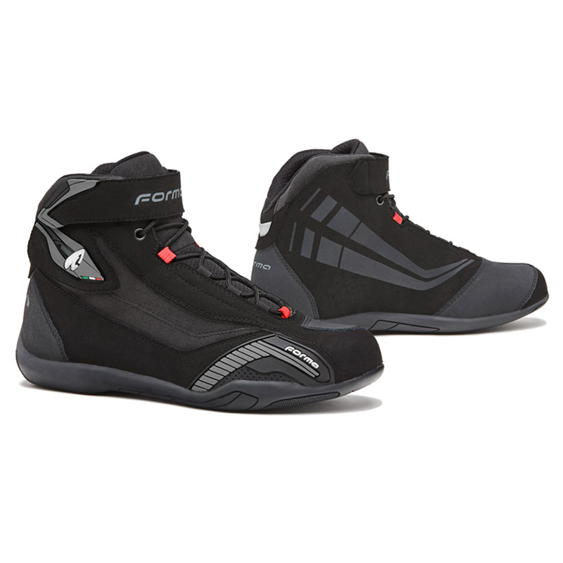 Καλοκαιρινά μποτάκια FORMA. Καλοκαιρινά μποτάκια μηχανής Forma Genesis, κοντές διάτρητες μπότες μοτοσυκλέτας Forma σε μαύρο χρώμα. Ιδανικά για όσους επιθυμούν την αγωνιστική αισθητική, χωρίς το επιπλέον βάρος, καθώς είναι κατασκευασμένα από ελαφριές και ανθεκτικές μικροΐνες.
