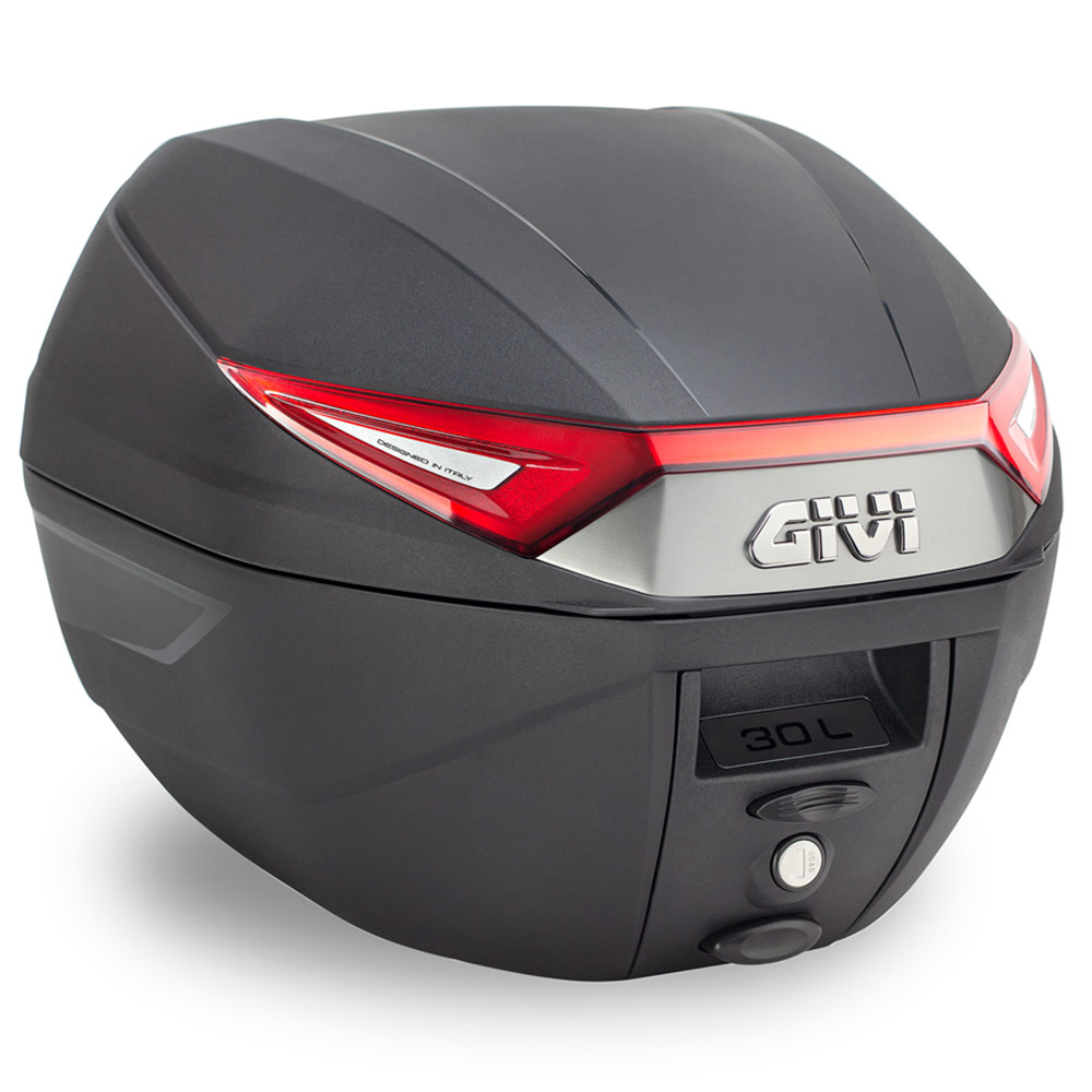 Givi C30N κεντρική βαλίτσα - μπαγκαζιέρα Monolock® χωρητικότητας 30 λίτρων, με κόκκινα ανακλαστικά. Η νέα μπαγκαζιέρα C30N συμβατικών και ηλεκτρικών μοτοσυκλετών & scooter από την GIVI.