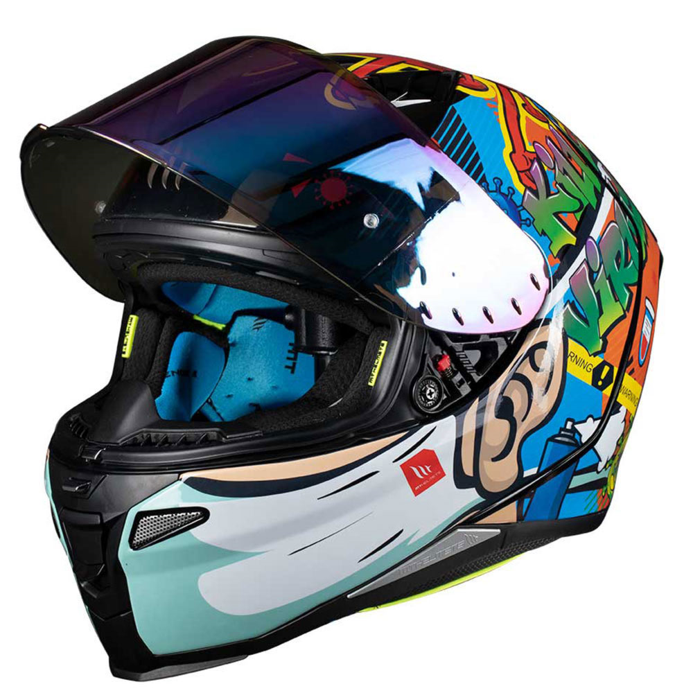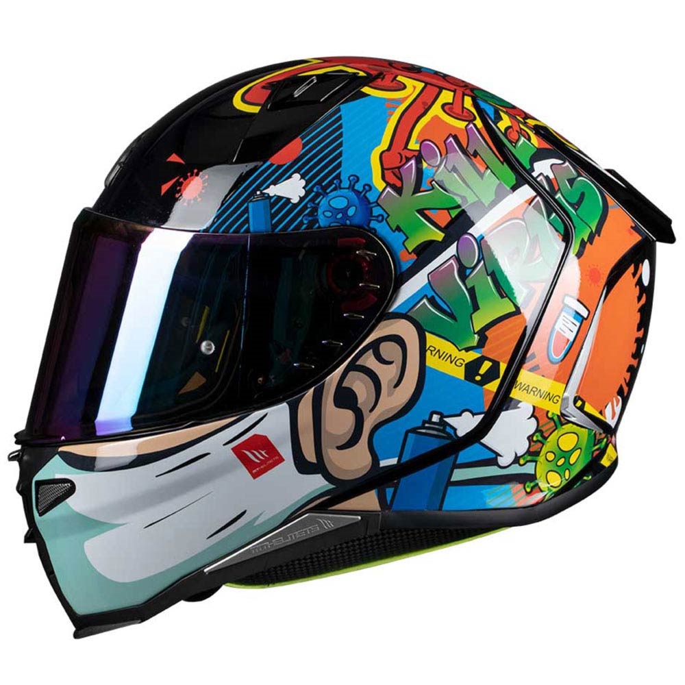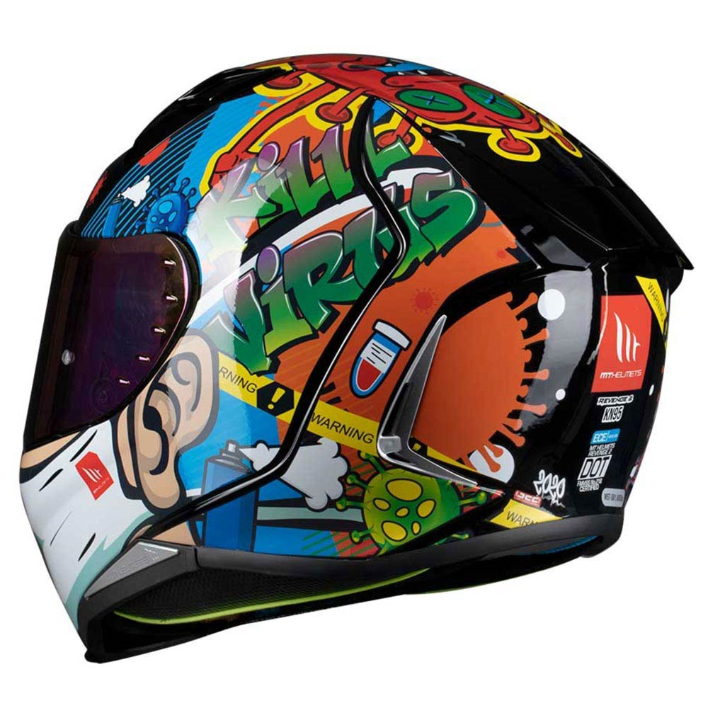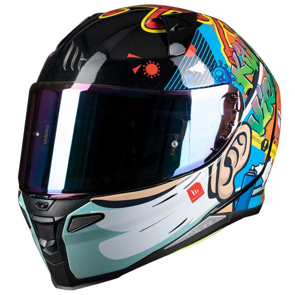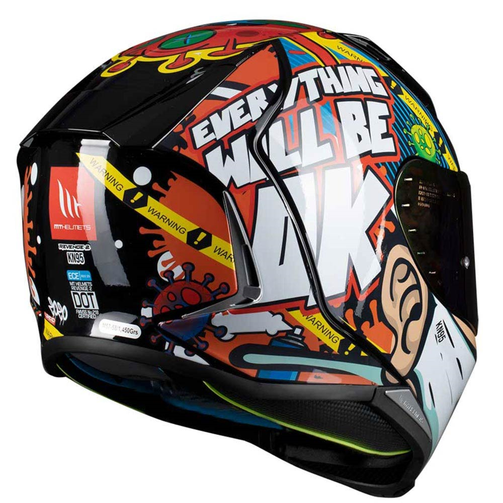 Κράνος MT Revenge 2 KN95 σε μαύρο γυαλιστερό χρώμα και πολύχρωμα γραφικά, το entry-level sport οικονομικό full face κράνος της ΜΤ με άκρως επιθετική σχεδίαση που αντιγράφει πολύ ακριβότερα κράνη, ήρθε για να κατακτήσει τους ανήσυχους πιτσιρικάδες με τα φτιαγμένα παπιά και όχι μόνο.