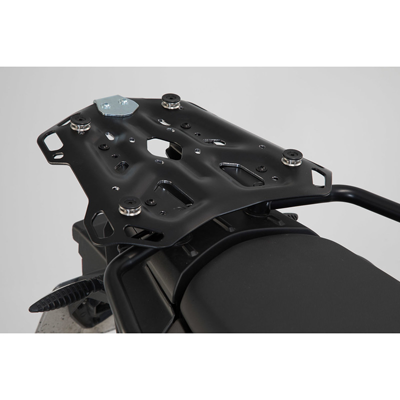 Πιάστρα για top case Adventure Rack από την SW-Motech για BMW F650GS / F700GS / F800GS. Η σχάρα μπαγκαζιέρας Adventure Rack βασίζεται στην Steel Rack της εταιρείας, με την σημαντική διαφορά ότι είναι ενισχυμένη για να αντέξει και την πιο σκληρή off-road τουριστική χρήση. Μελετημένη για αντοχή στις εκτός δρόμου καταπονήσεις και τους έντονους κραδασμούς, οι βάσεις τύπου Adventure Rack της Γερμανικής SW-Motech δέχονται βαλίτσες top case όλων των εταιρειών (SW Motech TRAX ADV/ION/EVO, Givi & Kappa Monokey & Monolock, Shad κ.α.) με τα ειδικά κιτ αντάπτορων για κάθε τύπο βαλίτσας που πωλούνται ξεχωριστά. Δοκιμασμένες και πιστοποιημένες από ανεξάρτητο φορέα στις πιο σκληρές συνθήκες, ανθεκτικές στην διάβρωση με κατασκευή από ειδικό αλουμίνιο πάχους 4mm, οι σχάρες Adventure Rack έχουν μεγάλη επιφάνεια και σημεία πρόσδεσης ιμάντων για να δεθεί με ασφάλεια οποιοσδήποτε σάκος στην ουρά. Η σχεδίαση τους είναι σύγχρονη για να ταιριάζουν με την αισθητική κάθε μοτοσυκλέτας, στο κλασσικό μαύρο χρώμα. Εύκολη εγκατάσταση χωρίς να απαιτείται καμία μετατροπή στην μοτοσυκλέτα, ενώ όλα τα απαραίτητα μαζί με τις οδηγίες χρήσης περιλαμβάνονται στην συσκευασία.