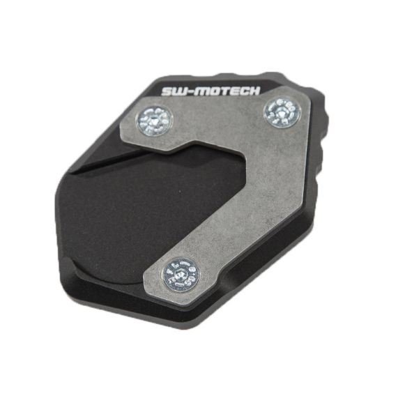 SW-Motech STS.07.102.10500 επέκταση βάσης πλαϊνού σταντ για BMW R 1250 GS Adventure (μοντ. 2018-2020). Αυτή η επέκταση βάσης του σταντ μεγαλώνει την επιφάνεια επαφής με το έδαφος δίνοντας έτσι μια καλύτερη στήριξη στην μοτοσυκλέτα, ειδικά σε σαθρό, μαλακό ή ανώμαλο έδαφος, όπως χώμα και λάσπη. Είναι κατασκευασμένο από υψηλής αντοχής κράμα αλουμινίου, για μεγαλύτερη αντοχή στον καιρό και αποτελείται από δύο μέρη. Το πάνω μέρος είναι ανοδιωμένο σε ασημί χρώμα, ενώ το κάτω μέρος είναι μαύρο. Η συσκευασία περιέχει την επέκταση σταντ, βίδες στήριξης και αναλυτικές οδηγίες εγκατάστασης.