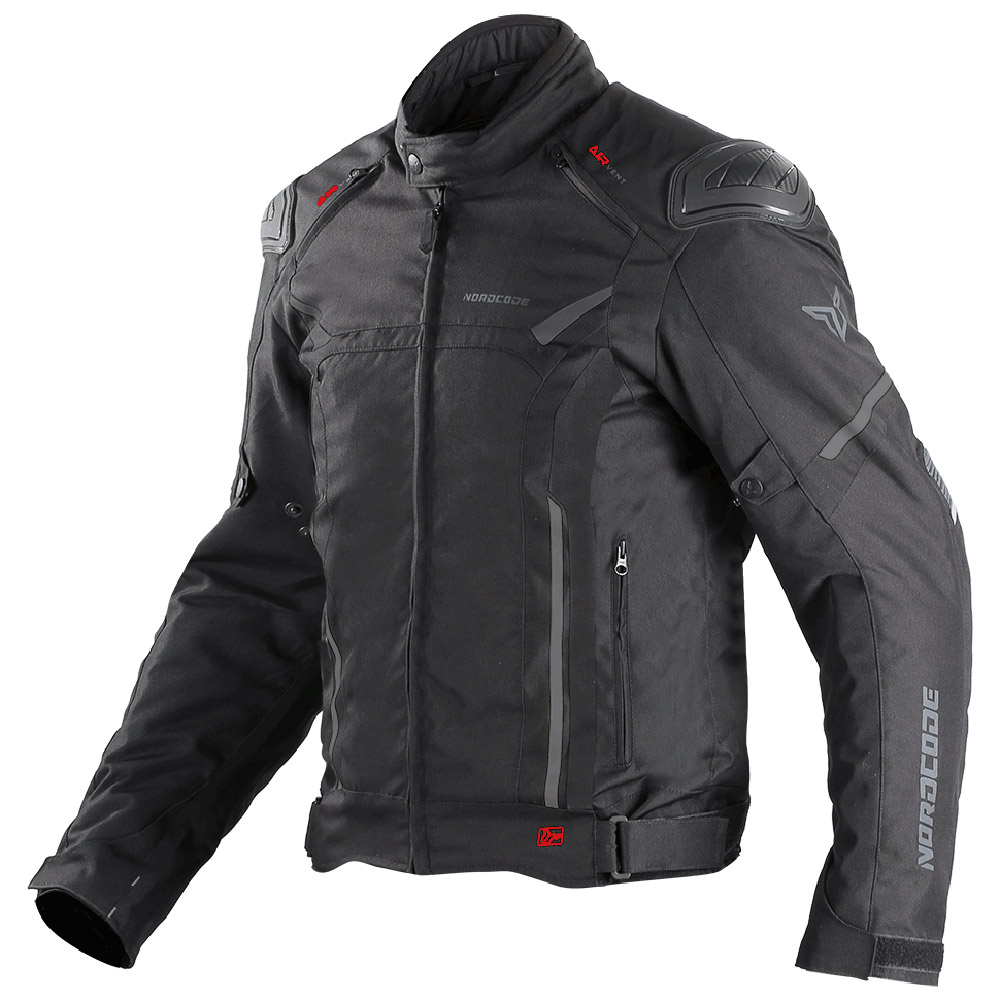 Χειμερινό μπουφάν μηχανής Nordcode Viper Evo με 2 εξωτερικές μπροστινές τσέπες, εσωτερική αδιάβροχη τσέπη και τσέπη για το τηλέφωνο. Εξοπλισμένο με πιστοποιημένες προστασίες EN1621-1 στους ώμους και τους αγκώνες, καθώς και προστατευτικό πλάτης που μπορεί να αναβαθμιστεί σε προστατευτικό πλάτης επιπέδου 1 και επιπέδου 2 από τη Nordcode. Ανακλαστικά λογότυπα και λεπτομέρειες για αυξημένη ορατότητα κατά την οδήγηση τη νύχτα.