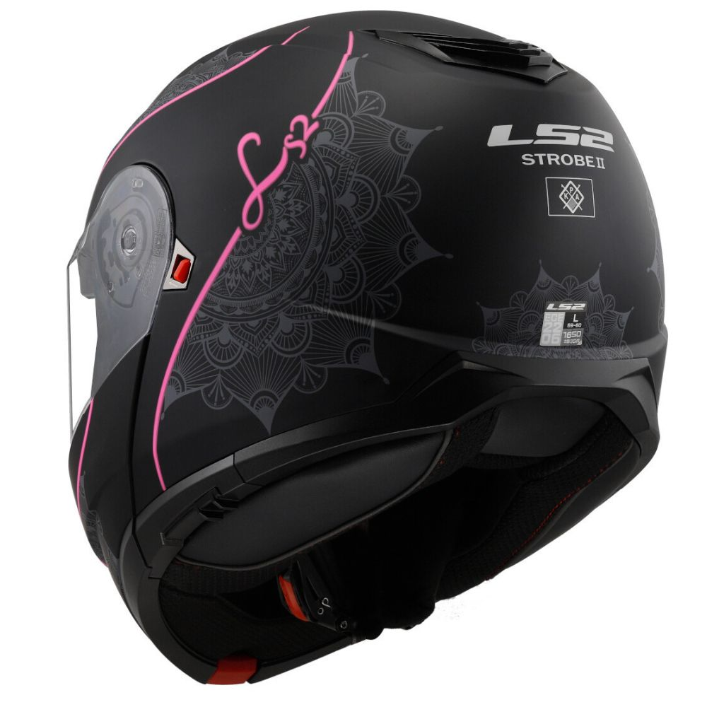 - LS2 Strobe II Flip-Up Modular κράνη μηχανής ECE 22.06 Lux μαύρο ματ ροζ