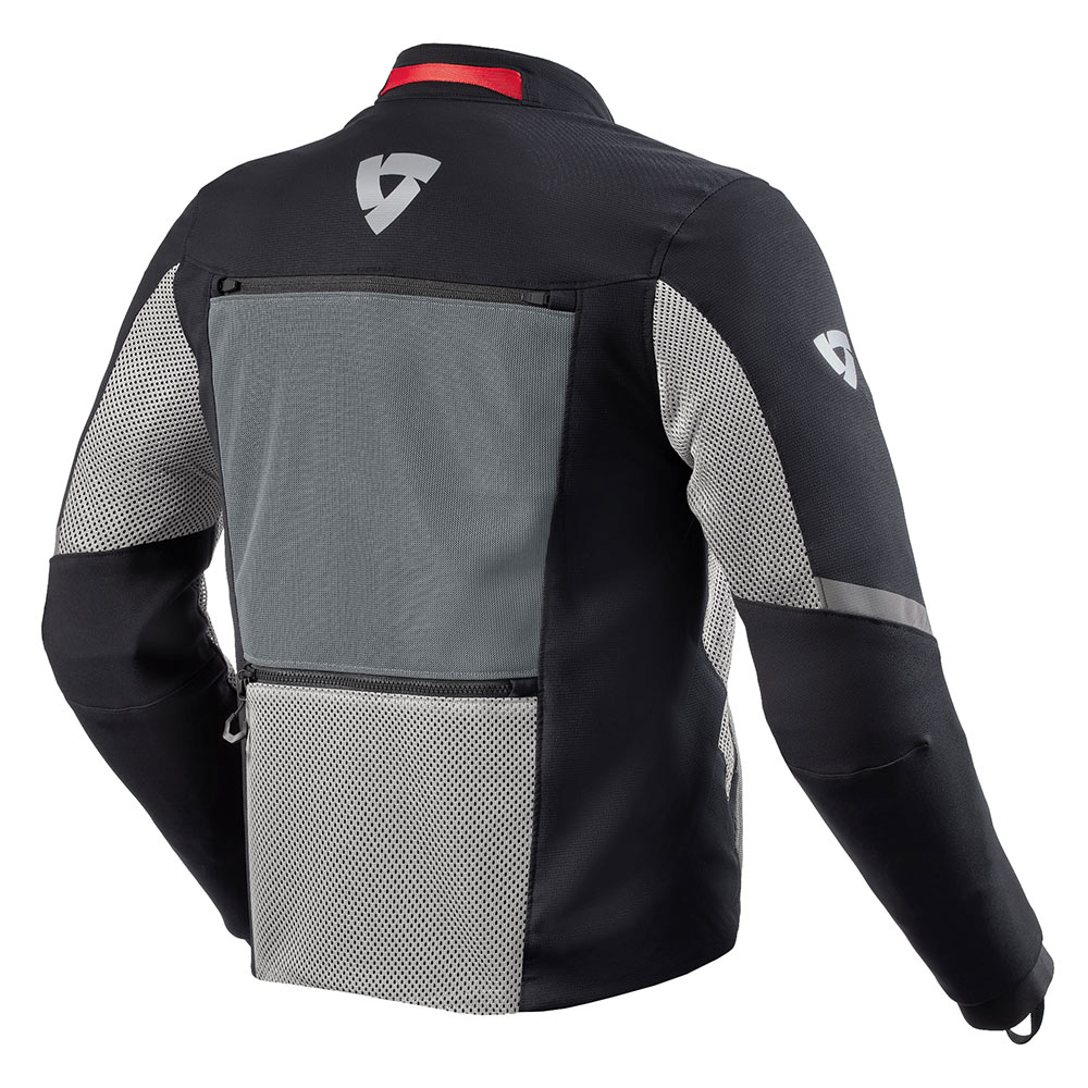 Κατά τη διάρκεια της άνοιξης, το καλοκαίρι ή σε υψηλές θερμοκρασίες, το εσωτερικό βασικό κέλυφος κατηγορίας AA με πιστοποίηση CE θα σας κρατήσει δροσερούς και άνετους. επιτρέποντας στον αέρα να ρέει προς το σώμα. Το μπουφάν μηχανής Revit Stratum GTX από πλέγμα αέρα είναι εξοπλισμένο με προστατευτικά CE-level 2 SEEFLEX στους αγκώνες και τους ώμους που ρυθμίζονται στη θέση μας καθώς και ένα προστατευτικό πλάτης SEESOFT Air CE-level 2. Μια επιπλέον αναβάθμιση μπορεί εύκολα να γίνει προσθέτοντας τα προστατευτικά στήθους CE-Level 1. Η αποσπώμενη ζώνη μέσης νεφρών παρέχει σταθερότητα και προστασία στην περιοχή του κάτω μέρους της πλάτης. Επιπλέον, μια τσάντα ενυδάτωσης μπορεί να τοποθετηθεί στην τσέπη στην πλάτη.