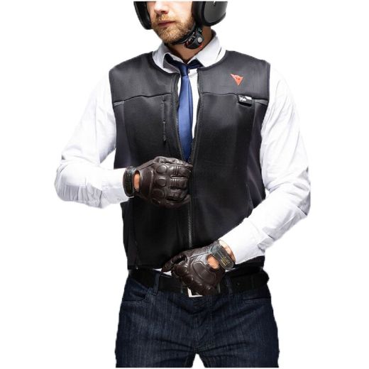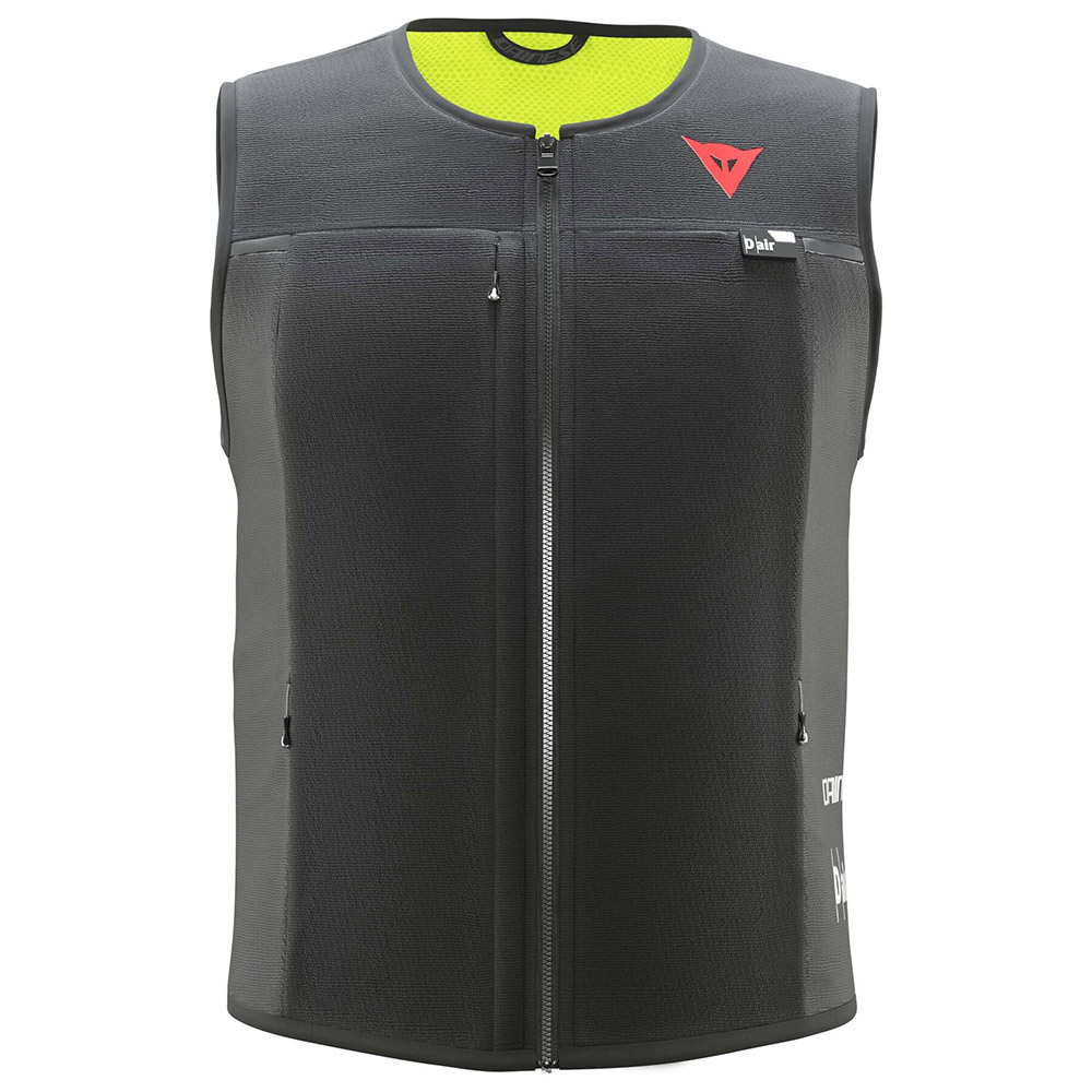 Dainese Smart Jacket D-AIR γιλέκο σε μαύρο χρώμα και φωσφορίζον κίτρινο εσωτερικό. Το Smart Jacket μπορεί να φορεθεί πάνω ή κάτω από οποιοδήποτε άλλο μπουφάν ή στολή και δεν απαιτεί σύνδεση με τη μοτοσικλέτα.