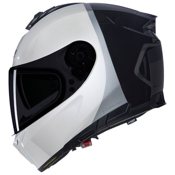 Είναι επίσης σχεδιασμένο για την άνεση των αναβατών που φοράνε γυαλιά και εφοδιασμένο με το σύστημα έκτακτης απελευθέρωσης NERS της Nolan. Το δέσιμο γίνεται με πόρπη με μικρομετρικές ρυθμίσεις Microlock 2 για να είναι πάντα κουμπωμένο στην σωστή θέση.