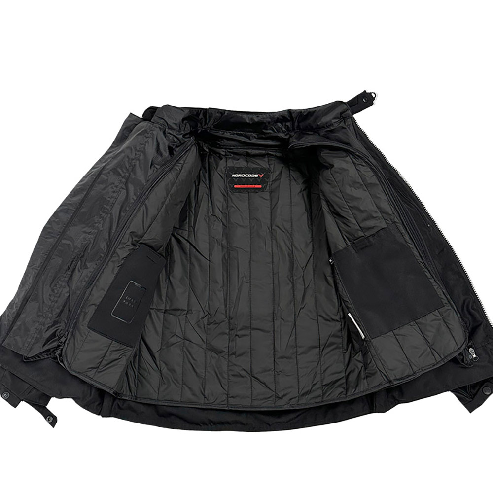 4 μπροστινές τσέπες, 1 μεγάλη πίσω τσέπη, 1 τσέπη στο μανίκι για κάρτα διοδίων, 1 εσωτερική αδιάβροχη τσέπη και 2 τσέπες στη θερμική επένδυση, μία για κινητό τηλέφωνο.