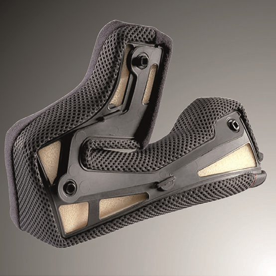 Στο εσωτερικό συναντάμε νέα μαξιλαράκια δανεισμένα και δοκιμασμένα στο Nolan N87, όπου η υψηλής ποιότητας πολυστερίνη και τα δερμάτινα ένθετα, που πέρα από την αίσθηση πολυτέλειας, προσθέτουν σταθερότητα και άνεση. Το εσωτερικό αφρολέξ των μαξιλαριών είναι αφαιρούμενο ώστε να πλυθεί μόνο το κάλυμμα και να στεγνώσει πιο γρήγορα ενώ υπάρχει πρόβλεψη για όσους χρησιμοποιούν γυαλιά οράσεως ή ηλίου, ώστε να μην ενοχλεί ο βραχίονας τους.