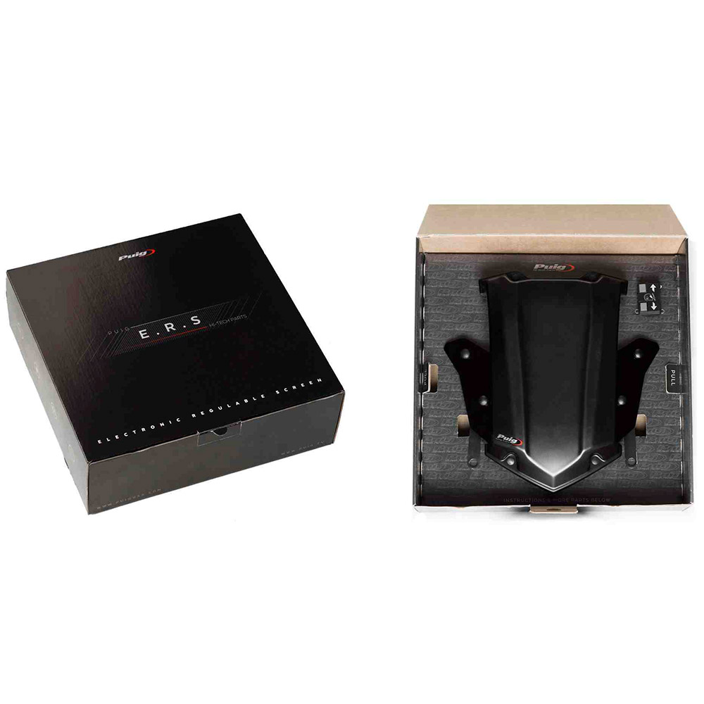 Puig 9718N E.R.S Κιτ ηλεκτρικής ρύθμισης ζελατίνας φαίρινγκ για μηχανές BMW R1200GS LC (μοντ. 2013-2018), R1200GS Rallye (μοντ. 2017-2018), R1200GS Exclusive (μοντ. 2017-2018) και R1250GS (μοντ. 2019-). Προσαρμόστε το ύψος της ζελατίνας σας, ανάλογα με τη διαδρομή, το ύψος σας, τις προτιμήσεις σας ή τις καιρικές συνθήκες κάθε στιγμής με το ηλεκτρονικό σύστημα ρύθμισης της Puig E.R.S (Electronic Regulable Screen).