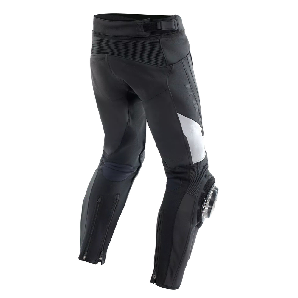 Τo δερμάτινο παντελόνι Dainese Delta 4 συνδέεται εύκολα με κάθε σπορ μπουφάν Dainese μέσω φερμουάρ πλήρους μήκους, δημιουργώντας ένα ενιαίο σύνολο εξοπλισμού για απόλυτη σταθερότητα και προστασία σε υψηλές ταχύτητες. Οι τοποθετούμενοι αγωνιστικοί sliders στα γόνατα και τα ρυθμιζόμενα σύνθετα προστατευτικά Pro-Armor στα γόνατα και Pro-Shape 2.0 στους γοφούς εξασφαλίζουν κορυφαία ασφάλεια, με πιστοποίηση EN 1621.1 και EN 17092 κατηγορίας AA.