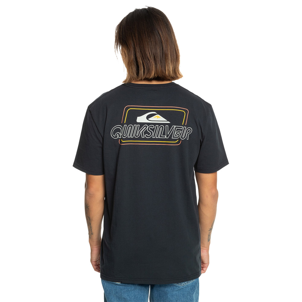 Men Shortsleeve Tee QUIKSILVER. T-Shirt Quiksilver Line by Line in black with small print 'Quiksilver' logo on chest and large on the back.