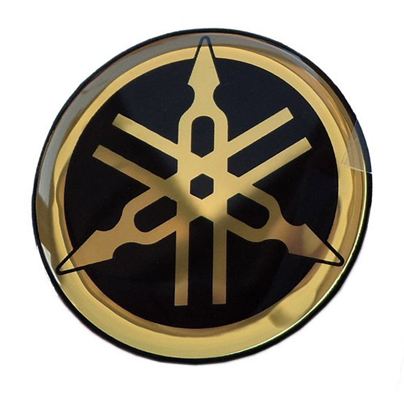 stickers MD. MD Yamaha Arrow 3D emblem sticker, of the three Yamaha forks with a diameter of 5 cm in black and gold, by MD.