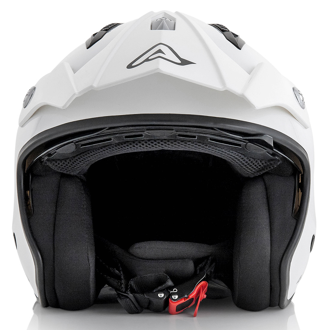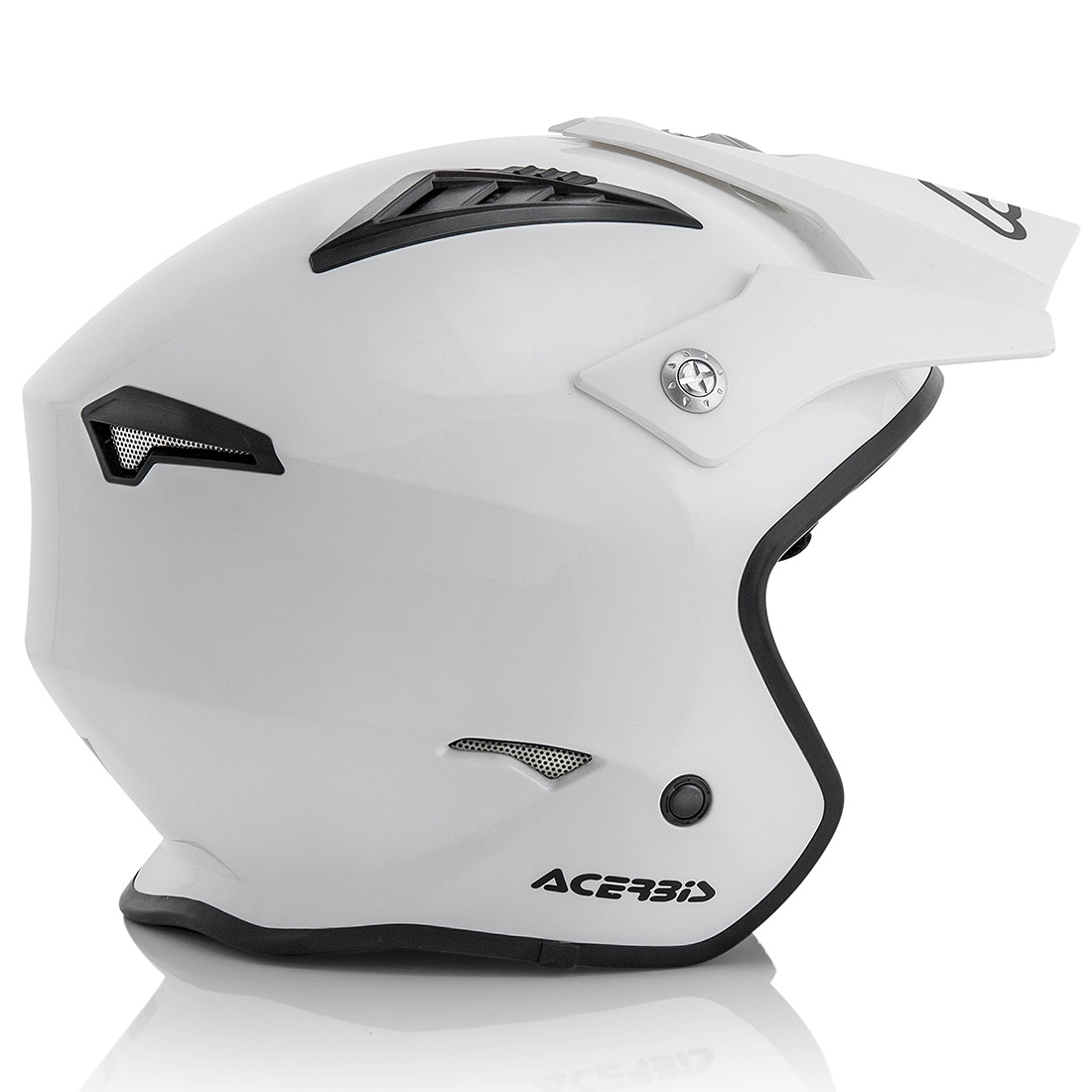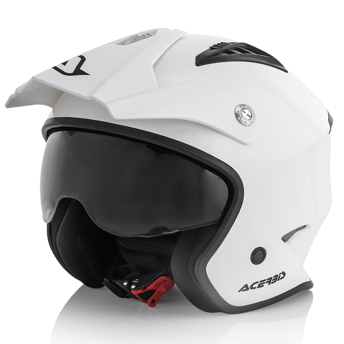 Jet Helmet Acerbis Aria White. A solid open face helmet from Acerbis, made from thermoplastic material for the upper shell, adjustable and removable upper vent, removable inner smoke visor, removable inner liner.