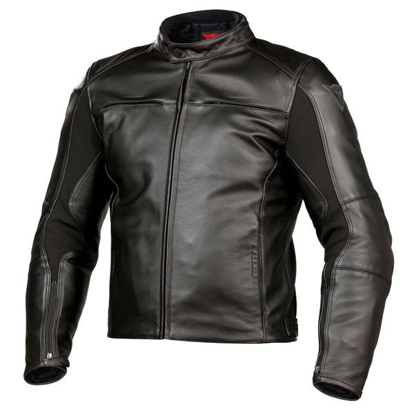 Dainese Razon Pelle leather jacket for motorcycle use. Constructed in leather that is both thick and soft at the same time, the Razon jacket combines innovative technical solutions like patented Microelastic inserts with the essential style and strong character of the bikers who wear it.