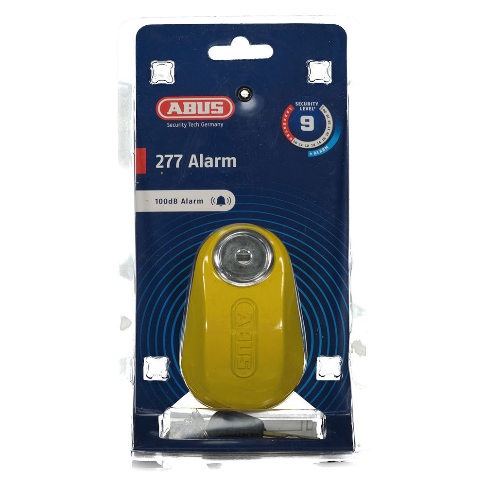 Motorcycle disc lock Abus 277A with 10 mm bolt made of hardened special steel offers a solid basic safety, easy handling due to "push down" cylinder where the bolt is moved in the locking process automatically, the bolt, lock body as well as supporting elements of the locking mechanism are made of special hardened steel, alarm function on basis of a vibration detection system that means, that every impact attack is detected, alarm of at least 100 dB.