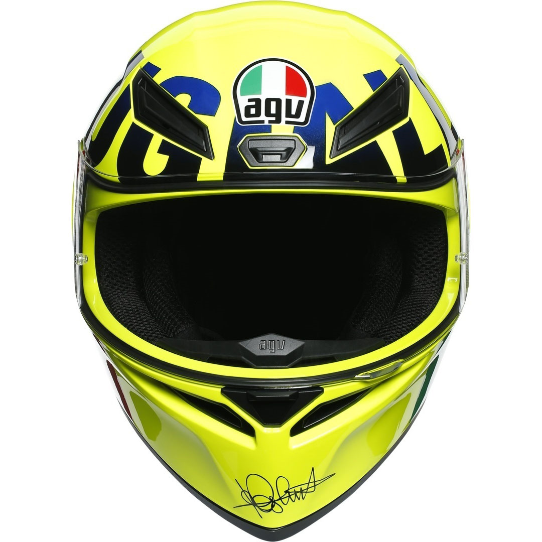 AGV K1 Valentino Rossi Replica full face helmet. AGV unveiled the K-1 model - an affordable, adaptable helmet with a surprising array of features, including an impressive aerodynamic performance, efficient ventilation and an expansive field of vision.
