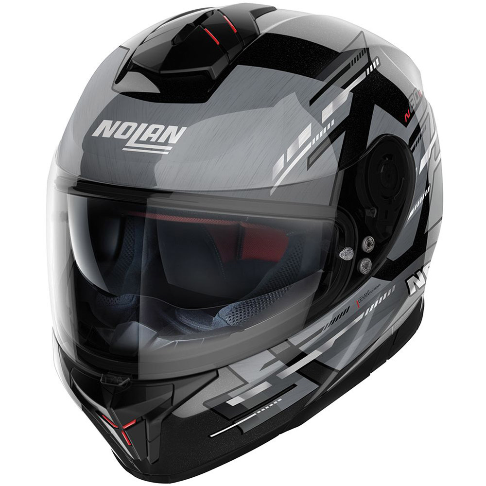 The inner padding is made of eco-friendly fabrics based on the use of 100% regenerated fibres and features LPC Liner Positioning Control to adjust liner position to varying requirements and head shapes, plus NERS Nolan Emergency Release System (patent pending). Comfort of the highest level, also thanks to the Eyewear Adaptive system (designed for eyeglass wearers) and the wide perforated wind protector. An effective ventilation system characterized in particular by the presence of the tested Airbooster Technology plus liner with an innovative net construction that further aids the movement of air around the upper part of the rider’s head.