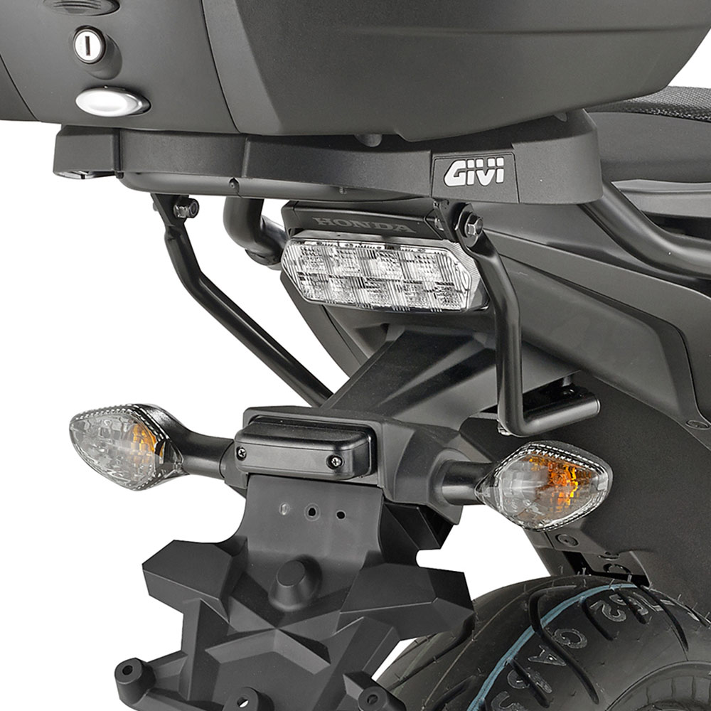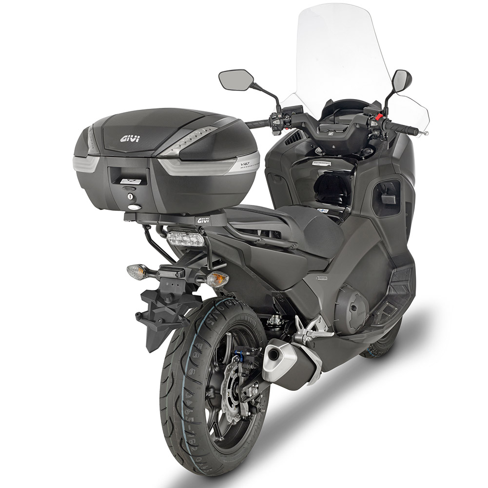 Givi SR1150 Topcase's base rear rack for Honda Integra 750 (2016-2020) motorcycles. Rear rack SR1150 works with MONOKEY M5 or M7 plates, MONOLOCK M5M or M6M plates, aluminium bag holder EX2M by Givi. Easy installation with all the necessary screws, bolts, nuts and spacer included in the package.