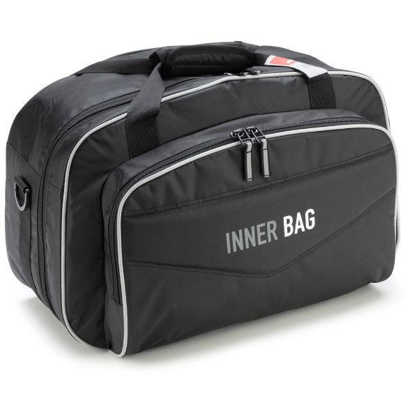 Givi T502 waterproof soft bag for topcases V47, V46, E41 Keyless, E460, E360, E45, B47 Blade, E470 Simply III and E450 Simply II by Givi. Equipped with a large frontal pocket suitable for laptop screens up to 13.4 inches, padded handles and shoulder strap for carrying manually.