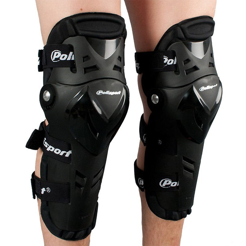 Knee guard MX Enduro POLISPORT. Polisport Devil knee guards in black color for use in Motocross, Enduro or Downhill MTB. Polisport's proposal in the cheap category of articulated, hard knee pads.