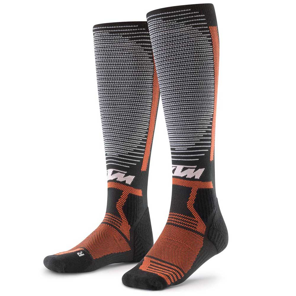 High functional KTM Socks Long Touring motorcycle socks in black, ideal for use in low temperatures, with durability and a design that ensures ergonomics, comfort and effective thermoregulation during your rides.