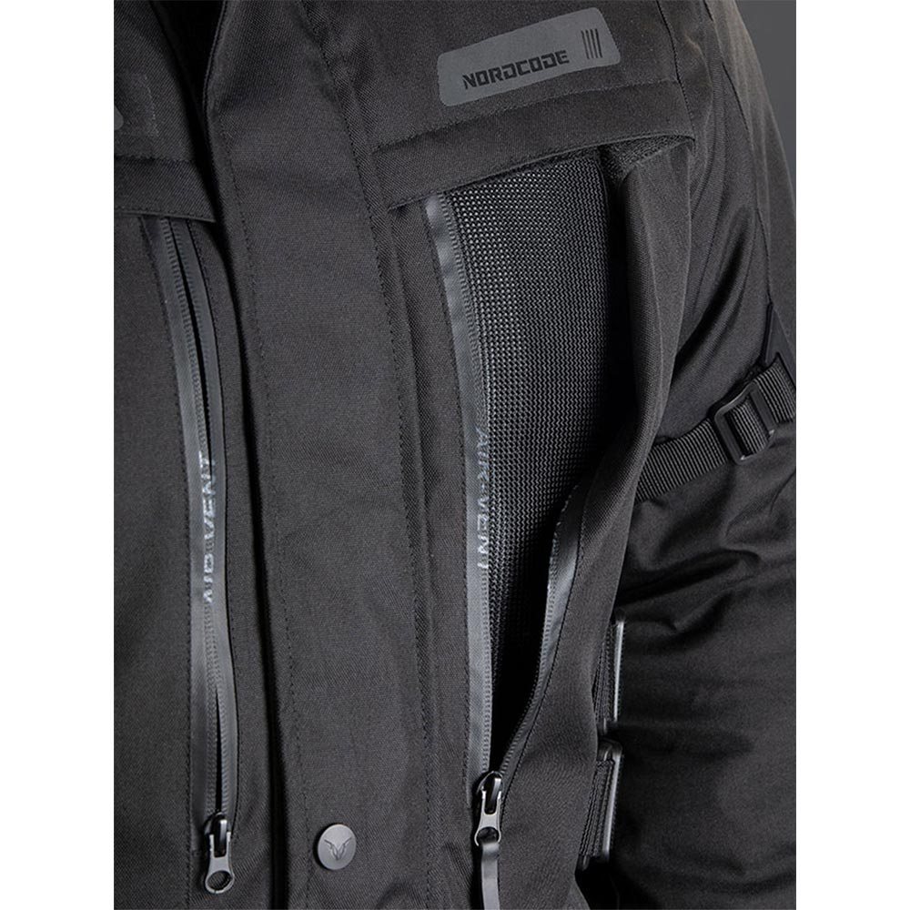 Adventure motorcycle winter jacket Nordcode Rhyno with 2 external front pockets, 1 large back pocket, 3 internal pockets the 2 in the thermal lining, one for a mobile phone. Equipped with EN1621-1 certified protections on shoulders and elbows plus Removable CE back protector that can be upgraded to level-1 & level-2 back protector by Nordcode. Reflective logos and details for increased visibility while riding at night.