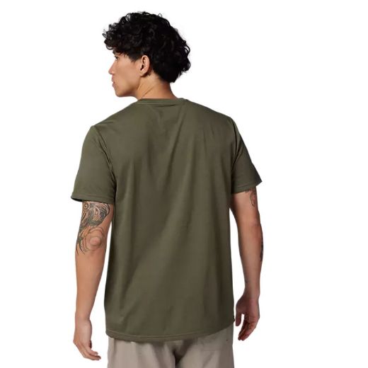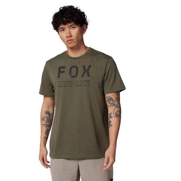 FOX Men's Short Sleeve Shirts. Men's Fox Non Stop Tech Tee, men's shirts from Fox Racing in olive green color.