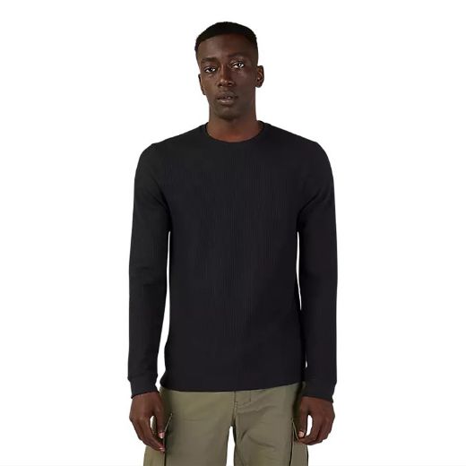 Men thermal tee FOX. Thermal Longsleeve shirt Fox Level Up in black color with white small FOX logo.Take your favorite flannel to the next level of cozy warmth with the Level Up Thermal Long Sleeve Shirt.