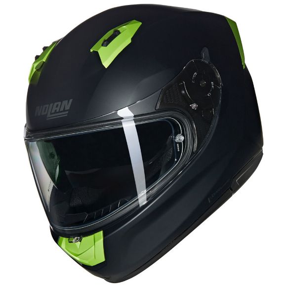 The full face helmet Nolan N60-6, in Lexan TM polycarbonate, is characterised by a contemporary, sports-inspired design that provides its wearer with the utmost sensation of comfort and safety. Equipped with eco-friendly inner padding, Airbooster technology for optimal airflow and an adjustable sun screen, the N60-6 is also a favourite with new generations of motorcyclists. The N60-6, with its new range of graphics and colours, continues to bring style to the road with its unique and unmistakable design.