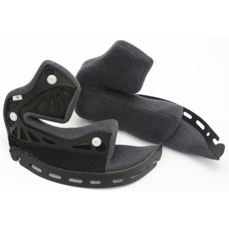 Original Shoei Cheek Pad Set for the Neotec II. The number on the cheek pad is the thickness in millimeters. Thinner pads can be applied to loosen the fit, thicker pads can be applied to tighten the fit. All sizes of cheek pads will fit any helmet size.
