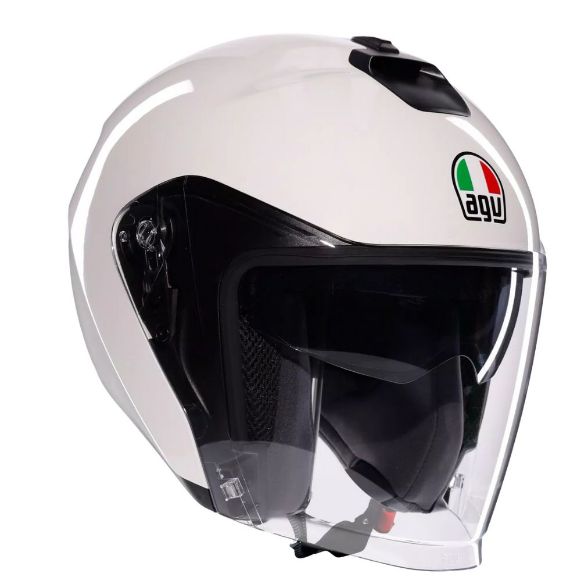 Jet Helmets AGV. Agv Irides is the new open-face helmet in thermoplastic material, with ECE2206 homologation, featuring a Pinlock™ 70 Ready visor with magnetic closure, designed to guarantee protection and comfort in everyday urban travel.