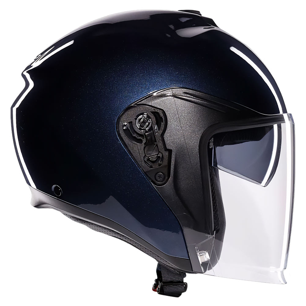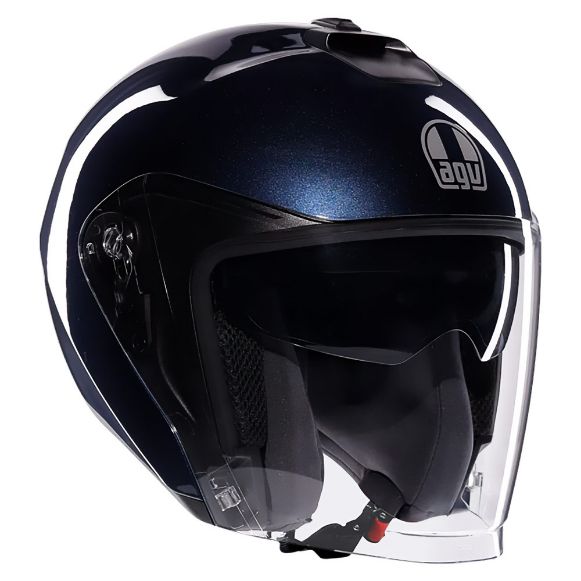 Jet Helmets AGV. Agv Irides is the new open-face helmet in thermoplastic material, with ECE2206 homologation, featuring a Pinlock™ 70 Ready visor with magnetic closure, designed to guarantee protection and comfort in everyday urban travel.