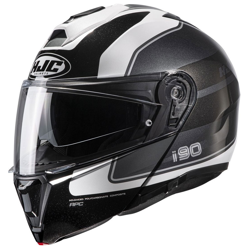Flip-Up Helmets HJC. HJC i-90 Wasco MC5 flip-up helmet in black and white graphics. HJC i90 helmet brings a touring rider’s dream to life as a new addition to the iconic line.