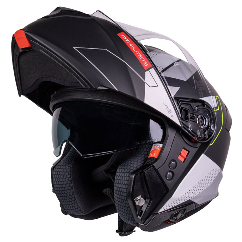 Thanks to its many options, this helmet is your ideal travel partner for every ride. The motorcycle and scooter flip-up helmet MT Genesis SV is designed with the most modern and best techniques. All this to guarantee safety, protection and comfort during the entire ride. The helmet is equipped with the latest safety standards and meets the ECE 22.06 and DOT approval.
