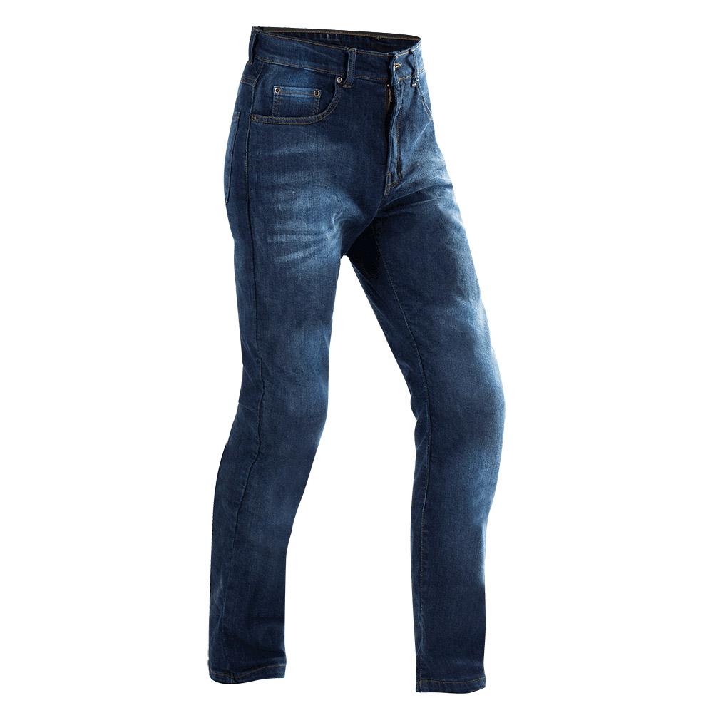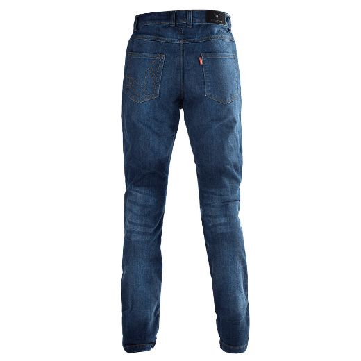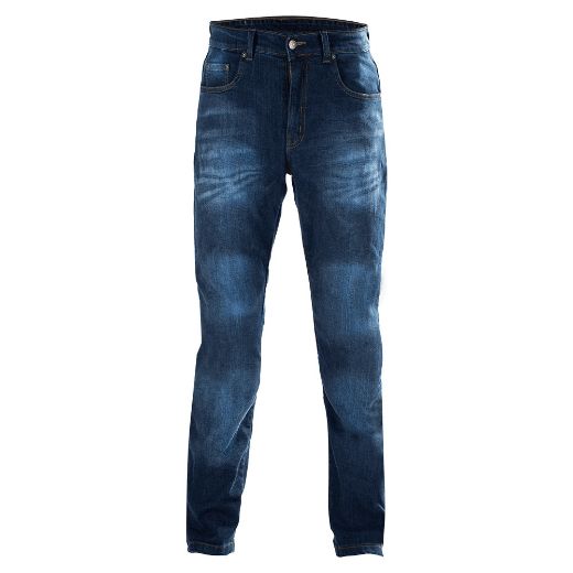 Mens jean pant Nordcap Stretch Jeans in blue stone-washed color with aged effect. Made of elastic Denim reinforced with Aramid fiber for increased strength, heat-resistance and abrasion resistance on ground contact areas.