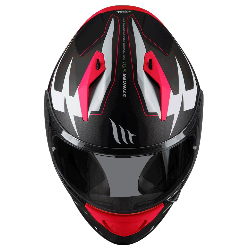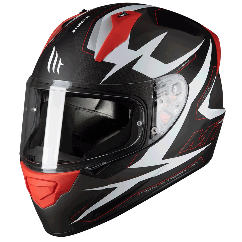 Motorcycle helmet MT Stinger red matt color Powered B5 graphics, a helmet from a brand with a rare ratio between quality and cost for such a low price. Injected thermoplastic outer shell, adequate ventilation, pinlock ready visor and a hypoallergenic removable inner lining.