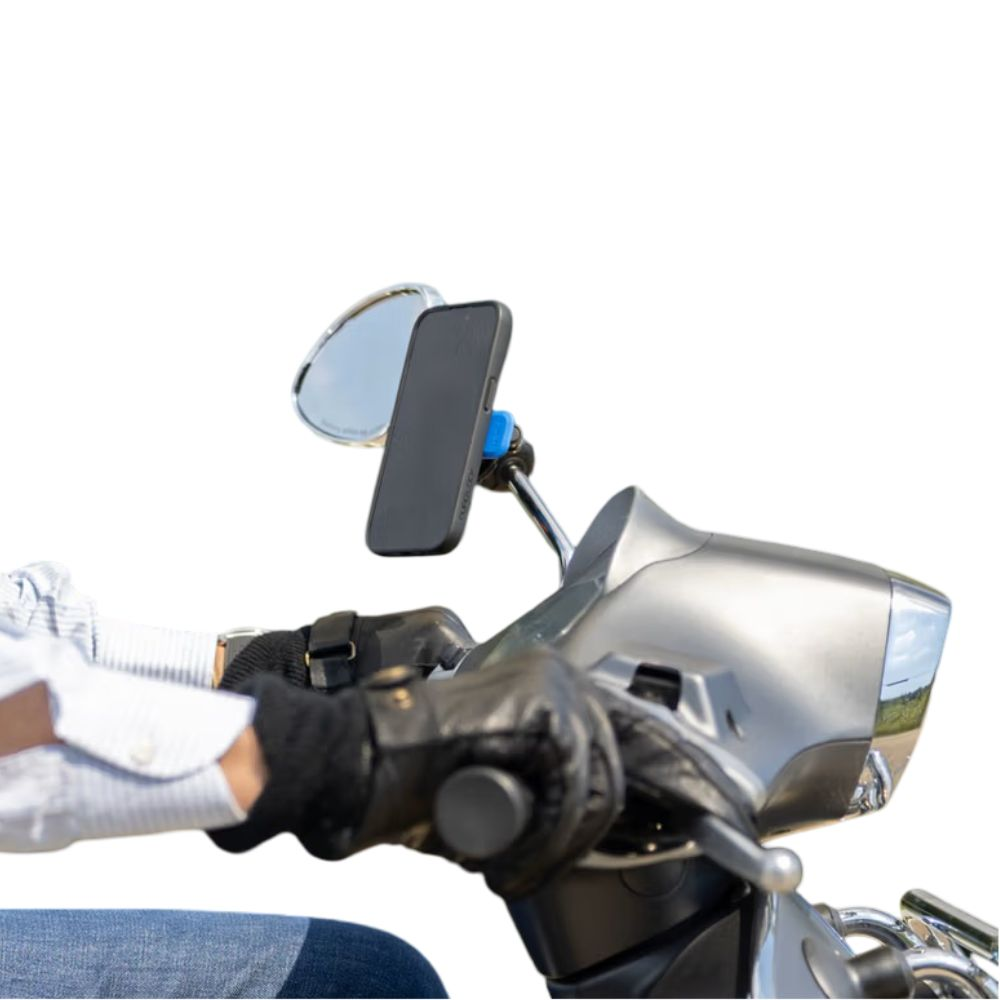 Quad Lock Mirror Mount motorcycle phone holder for mirror. Phone holder from Quad Lock. With the Quad Lock® Mirror Mount you can attach your phone with absolute security to the mirror of your motorcycle or scooter, as well as to small bars.