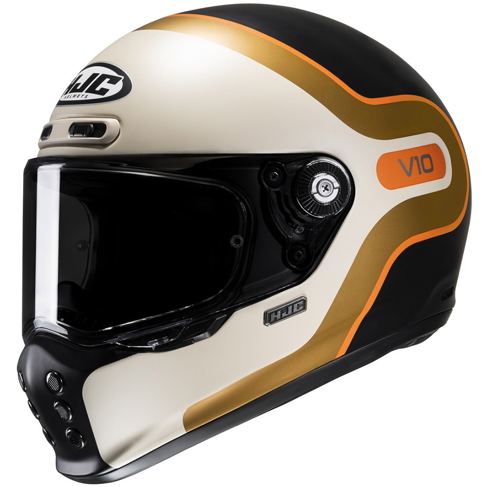 HJC V10 is the new retro full-face helmet with an Advanced Fiberglass Composite shell designed to be lightweight with superior fit and comfort, using CAD technology. Sophisticated ventilation with intake and exhaust ducts, designed for aerodynamic performance.