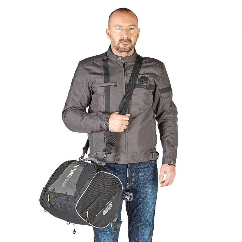 Scooter bag GIVI EA122. Scooter soft tunnel bag Givi EA122 in black color. A practical versatile bag of 23 litres capaciry, made for the tunnel between the riders legs of modern day scooters. Fitting to the motorcycle by means of 1 strap with 2 clips to be fix to the bag for fastening to the under saddle or in the tail.