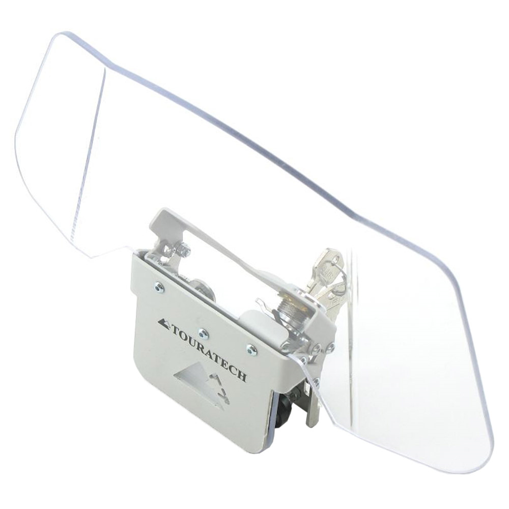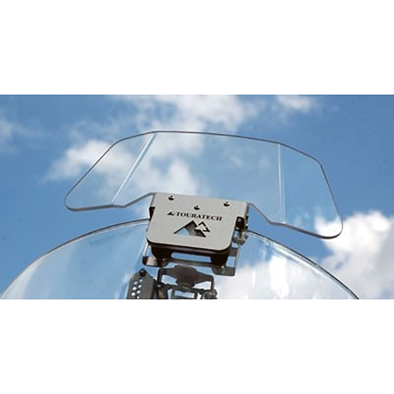 The lockable version of the spoiler Touratech 01-044-0412-0 for windscreen R1200GS is also simply clamped to the windscreen of the R1200GS. The high-quality mechanics can be secured with a lock. This makes quick unmounting or theft considerably more difficult.