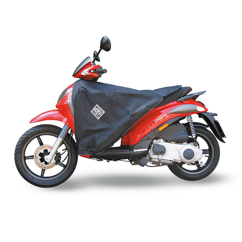 Thermal leg cover TUCANO URBANO. Leg Cover Tucano Urbano Termoscud R019 specific for Piaggio Liberty 50, Liberty 125, Liberty 150 and Liberty 200 scooter motorcycles, models till 2015. The original leg cover with patented anti-flap inflatable system (S.G.A.S.): the inflatable chambers on the sides of the cover prevent flapping at high speed.