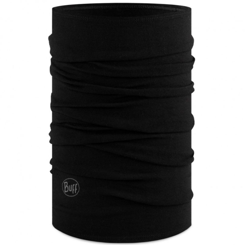 Buff Merino Midweight isothermal neck scarves in solid black color, the Buff Merino Midweight isothermal multi-purpose scarf. Converts into a scarf, balaclava, hair band and scrunchie, bracelet and back of neck hat for sun protection!
