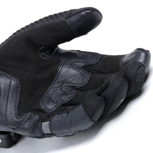 Great attention is paid to thermal comfort, combined with levels of protection according to Dainese standards, thanks to the integration of sheepskin reinforcements on palms and fingers and soft Comf-tek viscoelastic polyurethane knuckle protectors ergonomically designed for maximum riding sensitivity.
